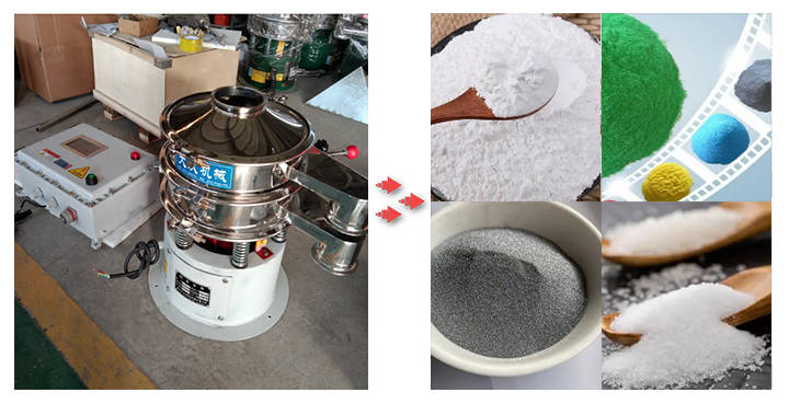 閘門型超聲波振動篩適合對細度有要求、容易堵網的粉末和顆粒物料。能篩分的物料有碳化硅、合金粉末、石英粉、淀粉、藥粉、顏料、涂料粉、化工原料粉、鋁粉等金屬粉末、磨料、陶瓷粉、食品用料、農藥粉、鹽、糖等。尤其適合處理有粘性、容易結塊、帶靜電或是細度較高的物料,能讓物料分級效果更理想。