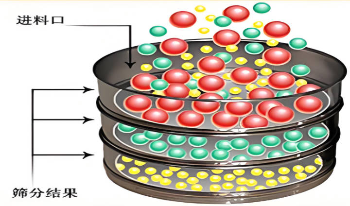 電機(jī)帶動(dòng)齒輪通過同步帶傳動(dòng)到主軸上,經(jīng)齒輪變速后主軸按要求的轉(zhuǎn)速轉(zhuǎn)動(dòng),主軸帶動(dòng)偏心輪使滑板做往復(fù)運(yùn)動(dòng),帶動(dòng)安裝在滑板托盤中的試驗(yàn)篩左右搖動(dòng),同時(shí)主軸帶動(dòng)頂桿齒輪轉(zhuǎn)動(dòng),變速后頂桿齒輪通過凸輪頂擊頂桿,頂桿使拍錘上下拍擊試驗(yàn)篩上蓋,使得試驗(yàn)篩、分樣篩中的物料往復(fù)和上下振動(dòng),使小于標(biāo)準(zhǔn)試驗(yàn)篩篩面網(wǎng)孔的物料顆粒篩分進(jìn)下層試驗(yàn)篩,如此層層篩選,使每層試驗(yàn)篩內(nèi)只留相同粒度的物料。達(dá)到不同粒度的分離并確定此物料的粒度組成。