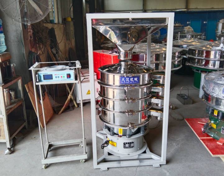 產品優勢:帶料斗振動篩進料口加料斗方便投料,網架采用子母網分離結構。按材質分為碳鋼材質和304不銹鋼材質。帶料斗碳鋼材質振動篩無衛生級別要求,價格便宜;304不銹鋼材質使用在食品醫